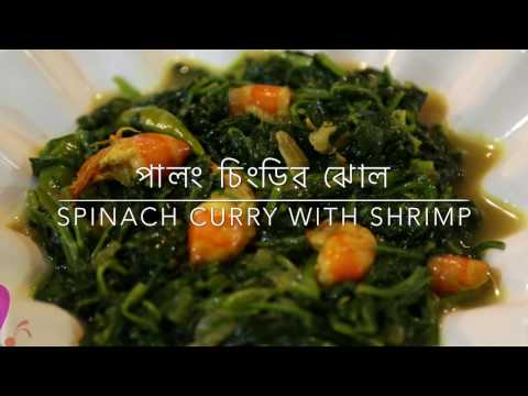 পালং চিংড়ির ঝোল॥শাক রান্না॥Spinach Curry with Shrimp ॥ R# 96 - Palong Shak Recipe - Ingredients: Spinach 2 bunches Shrimp 1 cup Chopped onions 1/2 cup Cooking oil 1/2 cup Green chili as your taste Turmeric powder 1/2 tsp Ginger paste 1/2 ...