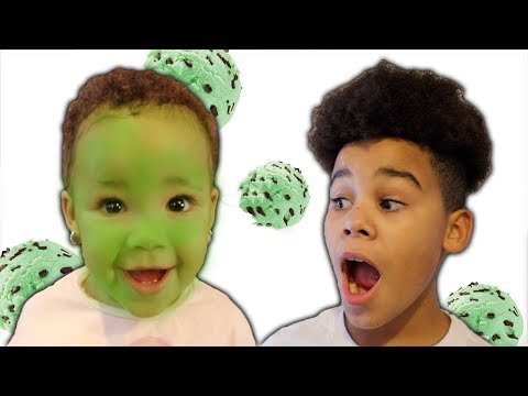 Green Ice Cream }}- In this video pretend magical ice cream makes our baby sister's face turn green! Follow us on instagram: https://www.instagram.com/famoustubekids/ ...