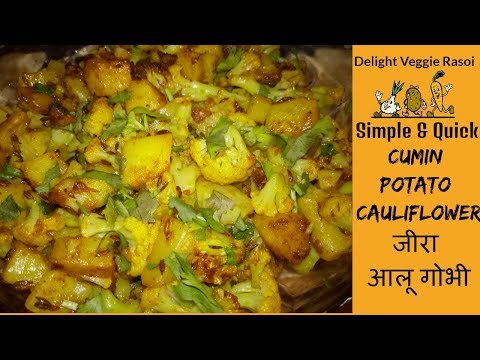 Jeera Aloo Gobi |जीरा आलू गोभी|Cumin Potato Cauliflower|Simple & Quick Recipe for lunchbox-In Hindi - Jeera Gobi - Aloo jeera gobi is a dry vegetable tempting with cumin seeds. It is perfect recipe as a side dish. It is easy and fast to make.It looks and tastes so good.