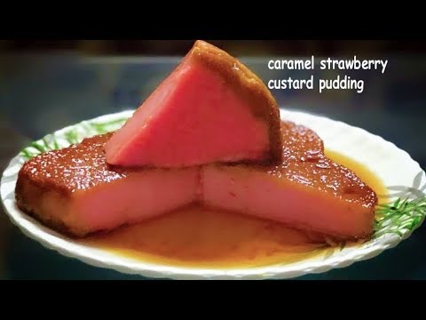 Strawberry Custard Dessert }}- pudding #caramelcustard #caramelpudding Ingredients 1 cup sugar 2 cup milk 2 tbsp custard powder, strawberry flavoured 2 tsp strawberry syrup 6-7 milk ...
