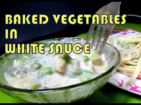 White Sauce For Vegetables }}- Baked Vegetables in white Sauce A dish to be served with pasta or rice. Creamy cheesy flavor melts in mouth. Best Vegan recipe. For detailed recipe please ...